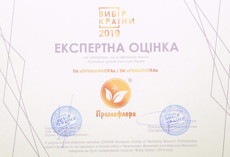 Атестаційна комісія Національної премії «ВИБІР КРАЇНИ» вручила нагороду нашій ТМ “Примафлора”! Ми вкотре підтвердили свій професіоналізм!